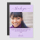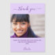 A violet, lavender background color. White, large hand lettered script with swashes and the text: Thank You. Personalize and add your photo, thank you note and name. Purple text.