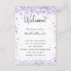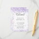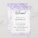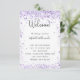 A modern, elegant wedding program, timeline. A white background decorated with violet, lavender colored confetti. Personalize and add your names and wedding details. Black colored letters. If you have more text it's possible to reduce the line space.