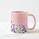 An elegant border of violet, lavender colored, purple and white watercolored pansies on a pink and peach colored backdrop. Templates for a monogram letter and a name, white and purple colored letters.