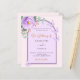 A blush pink background with violet and purple colored arch. Decorated with a floral, rose flower, green watercolored eucalyptus greenery and butterflies. Personalize and add your names and details.