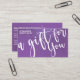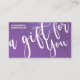 This is the perfect gift certificate business card for a trendy, stylish, girly, and modern businesswoman. This design features a simple white handwritten brush script typography on a faux printed sparkly violet purple glitter and bright violet purple ombre gradient glamorous and chic background. It's the perfect way to allow your customers to buy a gift for their family and friends and at the same time promote your business.