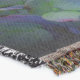 A quality printed throw has its advantages. This is a much finer weave throw than its loopier cousins, and though lighter, it is worth the investment for custom room accessorizing. The back is much prettier than the typical brown, and the fringe on the long sides very vivid, the selvage nicely done. Before photographing, I washed the throw in cold water, delicate, with a thicker woven throw the same size. On tumble dry low, this throw was dry in half the time as the other. This is a very practical quality if you use throws for furniture covers or to wrap up in frequently. The sleekness of the fabric makes it a great layer for accenting or protecting without the feeling of sitting on too much stuff. Perfect for napping or when you feel a light chill coming on. The color printing is beautiful and on this fabric, matched the design and color of my Photoshop image. This is an advantage for blending room fabrics and colors. The fringe on the short sides prints the colors from the design image and therefore varies from the side fringe. I streaked a white fractal line through the plaid pattern to give the illusion of weaving. This printed as crisp as an illusory thread, and put some white in the short side fringe, showing another advantage of print vs loomed- for artistic purposes, line lines, detail, and color integrity can be planned and preserved. My loomed throws have color limitations and more of a needlepoint texture. Print throws reproduce an exact image. The throw felt a little stiff straight out of the package, but this went away in the first delicate wash. Of course I searched the wash water for ink or bleeding and there was none.