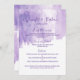 Modern, artsy, and elegant violet purple watercolor splash, wedding reception menu cards. This classic and sophisticated design is perfect for the classy, stylish, and trendy wedding reception. Personalize with your own menu on the front, along with your names and dates. Then customize the back with your monogram initial. All photo print design.