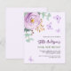 A soft lilac colored background. Decorated with a lilac and purple rose and green watercolored eucalyptus greenery and butterflies. Personalize and add your name and party details.