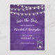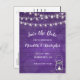 Rustic purple ultra violet wedding string lights save the date cards feature woodgrain photo background with twinkle lights and mason jar with candle. Mix and match this wedding save the date with our collection of matching wedding stationery and favors.