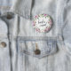 This pin arrived very quickly and is very beautiful. The pattern of flowers represent a theme of the shower and now for those people who I don’t actually know, as they approach the button tells them I am the brides mom! I will wear it with pride! Perfect. Easy to read, clear and flowing script.