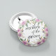 Identify the key players at your bridal shower with our elegant, sweetly chic floral buttons. Button features pink and violet purple watercolor flowers and green leaves, with "mother of the groom" inscribed inside in calligraphy script.