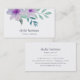Elegant business card design features a bouquet of watercolor flowers in violet purple and sage green, with your name and title or business name displayed along the bottom. Add your full contact details to the reverse side in midnight blue lettering. These unique business cards make a chic choice for florists, floral stylists, event planners, makeup artists and many more occupations.