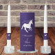 Personalize special candles for your wedding ceremony with a set of Violet Unicorn Unity Candle Set. Candle design features a starry background with a unicorn adorned with stars. Personalize with the groom and bride's names along with the wedding date, and taper candles with surnames. Additional wedding stationery and gifts available with this design as well. Need help with customization? Please contact me and I will work out the wording and details to fit this design to your satisfaction.