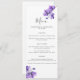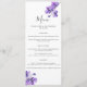 A pretty and dainty wedding menu card featuring violet watercolor orchid branches and hand lettered font. Other stationery pieces are available in this design.