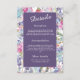 This wedding enclosure card comes in different sizes, shapes and papers. It is customizable with your reception, accomodation, details, monograms and other backgrounds. It shows a harmonious blend of floral colorful watercolor wildflowers and greenery. The minimal violet, lilac overlay is for your customization.