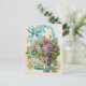 A lovely charming vintage nineteenth century illustration of violet flowers in a glass basket tied with a blue bow customizable to add text.