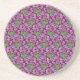 A pretty, round Sandstone Coaster, with an all-over pattern of Violets in Pale Mauve and Green on a Purple Background that you can change if you wish; from a watercolour painting by Judy Adamson. Part of the Posh and Painterly "Sweet Violets" collection.