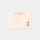 Sticky notes for a wedding (or personalized in other ways as you see fit) with a soft feminine design. Illustrated with a watercolor image of a wooden violin, some pink ballet slippers resting against it and decorated with flowers and butterflies. Set on a peach pink colored background.