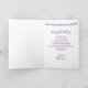 with flowers and butterflies. Set on a peach pink colored background. Personalized message on the inside which you can customize. A festive bunting banner along the top.