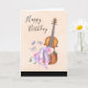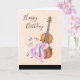 A birthday card with a feminine design. Illustrated with a watercolor image of a wooden violin, some pink ballet slippers resting against it and decorated