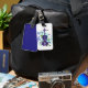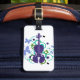 Find your case and or your violin in a crowd with this violin luggage tag with leather strap. Beautiful design with purple violin on the front and matching purple backside.