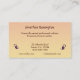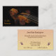 This business card advertises violin lessons. The front presents a classical still life of an elegant old violin scroll. This graceful instrument is essentially a hollow wooden box with rounded ends, two graceful f holes and a narrow center. The four sets of strings extend from a string holder at the bottom of the body over a raised bridge to the end of the narrow neck, or fingerboard where the four strings are inserted into a pegbox and are held there with pegs. The pegs are used to tune the violin. When the bow is drawn across the strings on the body of the violin it produces incredible, magical music! The gorgeous golden brown, almost orange tones are set off by graceful black velvet fabric. The reverse has the pertinent text. All text can be customized to suit your personal situation.