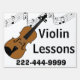 Earning a little extra income teaching violin? Bring in more business with this attractive music lessons yard sign, with graphics of an violin and wavy musical staff, at the top. Text in bold black is ready to personalize for your business. Design and text are the same on both side for easy viewing from the streets.