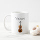 Classical Music orchestra mug, with a violin design and black customizable lettering. This item makes a great gift for the violinist in your life or for adding a little classical music to your hot beverage.