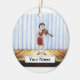 Lightweight, smooth, pure white ornament with nice sheen. Perfect size to be seen from across the room ... and to attract closer inspection! Price was great for ordering enough for the whole family! Clear, bold black design just as requested. Matches the order exactly. Just so nice!