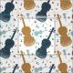 Festive violin pattern in blue and gold.