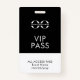 Template black and white VIP all access Event Badge. Replace with your own logo, event name and date. Simple and stylish.