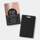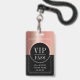 Template metallic rose gold and black VIP all access Event Badge. Replace with your own event name and date.Elegant luxe glam style.