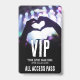 Concert Ticket All Access Special Event VIP Badge. Ideal for concerts, large events like conferences or speaker series, and even birthday parties. This design features a playful nod to a concert scene with someone forming a heart shape shadow with their hands. The background now showcases more muted tones, softening the mix of purple, blue, and white hues from the concert lights for a subtle, sophisticated vibe.
