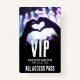 At the bottom, bold text highlights "VIP," the event name, date, and "All Access Pass." All text details and font colors can be customized. You can also replace the photo, though it may not fade to black as seamlessly at the bottom.