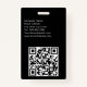 A minimalist modern design with elegant font for custom name and event information. Classic white font with your details on a chic black background. The name badge can be customized with your name, contact information and social media handles. The QR code can be customized to direct to your website.