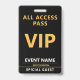 Premium VIP badge template featuring bold black and gold design with customizable event details. Perfect for concerts, corporate events, backstage passes, and exclusive gatherings. Professional layout with editable fields for name, date, and location ensures a polished, high-impact credential for special guests.