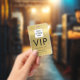 VIP Simple Font on Brushed Gold Metallic Badge