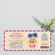 Fun and eye-catching retirement party invitation with a travel theme. The invitation is shaped as a traditional plane ticket and it has a drawing with palm trees and the sun. The design is great to symbolize days of relaxation ahead. The wording follows the travel theme. Add your own party details.