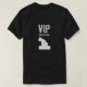 VIP in large, bold, edgy, white text with "Voter in Peril" with same, smaller text style underneath. Below that is a white image of a hand placing a ballot into the drop box. Available in many shirt styles, colors and sizes. Also available for women.