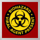 Biohazard - Viral Agent Present - warning sign poster in red, yellow and black with biohazard symbol.