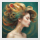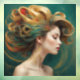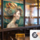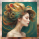“Virelle” - Opulence in Emerald Waves. With its luxuriant emerald curls and elegant gold accents, this digital art piece embodies the drama and glamour of high-end beauty. Designed to capture attention, it offers guests a moment of awe and inspires stylists as an emblem of bold creativity within salon interiors. 2 of 4.