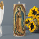 The image of Our Lady of Guadalupe, with her compassionate gaze and outstretched hands, graces the surface of the candle, casting a warm and comforting glow that envelops your surroundings in a sacred ambiance. As the flame dances upon the wick, it not only illuminates the physical space but also kindles a spiritual connection, inviting contemplation and prayer.