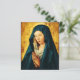 The plain and dark background contrasts with the Virgin's radiant bowed head and the white headdress covering it, and her hands are gently closed together