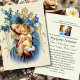 This is a custom designed religious funeral prayer card with the Blessed Mother with the Baby Jesus with a blue floral vintage lace background. All text and fonts can be easily modified. There are also matching "Thank You for Your Condolence Cards" in the Shower of Roses Shoppe.