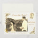 Design front features the photo you provide as main image with date displayed below in two ways. A beautiful image of Our Lady of Fatima appears at top right and is bordered by the image of delicate pink and white roses. The picture of golden wedding rings joined together is displayed at bottom left corner of photo. Customizable heading is featured in an elegant Nuptial font at top. Bordering the top left and bottom right corners are the images of roses and greenery. Names of Bride & Groom are displayed just below photo in same Nuptial font. Keeping with the traditional format for a Save the Date card, name of city and state of wedding also appear at bottom. Background color is featured as off-white. Also available in a variety of colors.