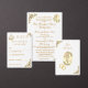 The Traditional Latin Nuptial Mass is a deeply reverent and beautiful celebration of the Sacrament of Matrimony, rich in tradition and deep in spirituality. Designed specifically for a Traditional Latin Mass wedding, the "Virgin Mary TLM" trifold wedding program contains the necessary parts of the Latin Nuptial Rite. Front cover bears the image of the Virgin Mary displayed as an oval at top right corner amid the image of roses against a white background. Heading is featured in a golden-colored Nuptial font, while sub-heading is displayed in a clear print. Names of Bride and Groom are also displayed in a Nuptial font. Name and address of the church appear at bottom in a smaller print. With explanations of the Mass displayed throughout, this elegant design also includes the name of the wedding officiant, names of altar servers, names of the parents of the bride and parents of the groom, wedding party names including the names for a maid-of-honor and best man, room for up to seven bridesmaids and groomsmen names, plus the names of the flower-girl and ring bearer. In addition, design of back cover features the photo you supply displayed as an oval below a bible verse (or your message) against white background. All text is customizable.