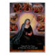 Virgin Mary is portrayed sorrowful and in tears, with one or seven swords piercing her heart, iconography based on the prophecy of Simeon in Luke 2:34–35. After reflecting on the Seven Sorrows (1) the Prophecy of Simeon and Anna (2) the Flight into Egypt (3) the Loss of the Child Jesus (4) the Condemnation of Jesus (5) the Crucifixion (6) the Retrieval of Jesus' Body from the Cross (7) and the Burial of Jesus)