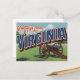 Celebrate the Old Dominion State with this historical retro "Greetings from Virginia" postcard. This classic large-letter design highlights Virginia's crucial role in American history, featuring a Civil War-era cannon in the foreground and a historic capitol building (or similar landmark) in the background. This vintage travel art is perfect for history buffs, Virginia residents, Civil War enthusiasts, and collectors of Americana state souvenirs.