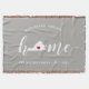 Show some home state pride with this cute rustic gray throw blanket featuring "home" in white calligraphy script lettering with a silhouette map of the state of Virginia standing in for the letter "O." A red heart illustration inside the state map completes the design; you can change the position of the heart to your home city by opening the design tool and dragging the heart shape to your favorite spot. Personalize with your home city, family name and year established to create a perfect and memorable housewarming gift or addition to your new home.