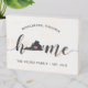 Show some home state pride with this cute wood box sign featuring "home" in black calligraphy script lettering with a silhouette map of the state of Virginia standing in for the letter "O." A pink heart illustration inside the state map completes the design; you can change the position of the heart to your home city by opening the design tool and dragging the heart shape to your favorite spot. Personalize with your home city, family name and year established to create a perfect finishing touch for your entryway, or a memorable housewarming gift.
