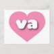 This postcard features a vibrant pink heart containing the bold, white, rounded lower case letters va, a playful abbreviation for the state of Virginia, the old dominion state. The reverse side of the postcard is blank, awaiting your handwritten sentiments or customized text.
