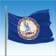 The state flag of Virginia consists of the obverse of the seal against a blue background. The state seal shows a woman personifying virtue and dressed as an Amazon. She wears a helmet and holds a spear and sword above the Latin motto “Sic semper tyrannis” (“Thus always to tyrants”).