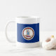 This mug design features the Virginian flag on one side and a map of Virginia on the other.