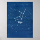 A poster featuring the constellation for Virgo in the night sky with an indigo watercolor wash background. Fun poster for yourself or gift for a Virgo friend. You can find the other star sign constellations on a variety of items in my shop.